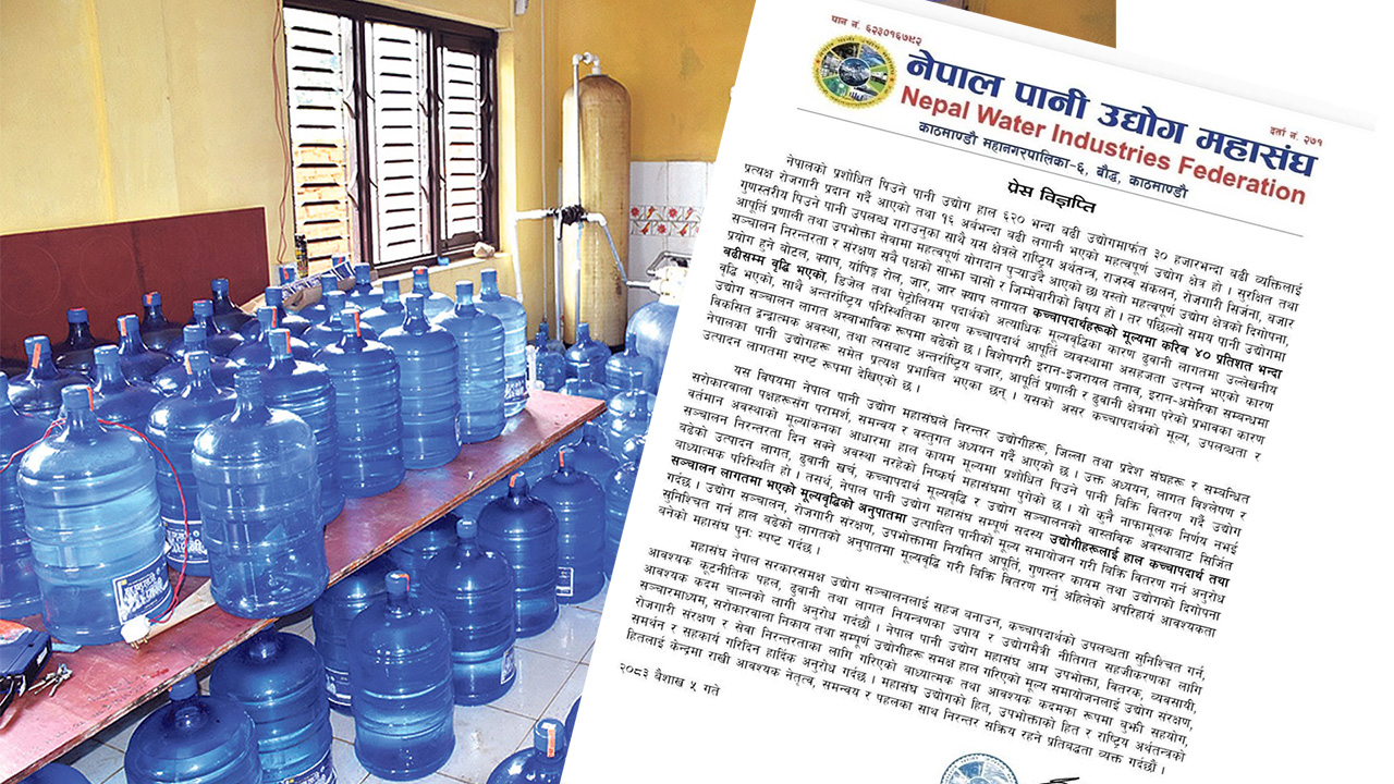 पिउने पानीको मूल्य बढाउने नेपाल पानी उद्योग महासंघको निर्णय
