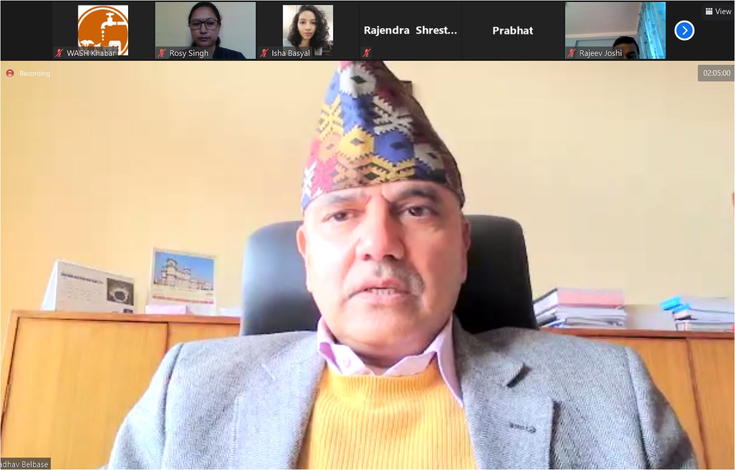 काठमाडौ : खानेपानी सचिव माधव बेल्बासेले दिसाजन्य लेदो व्यवस्थापनको कुरा देश विकास सँग जोडिएको बिषय भएको बताउनुभएको छ । नगरव्यापी समावेशी सरसफाइ र दिसाजन्य लेदो व्यवस्थापन विषयक जुम अन्तरक्रियामा सचिव बेल्बासेले दिसाजन्य लेदो व्यवस्थापनको कुरा मानव सभ्यता र स्वस्थ जीवन सँग जोडिएको बिषय भएको बताउनुभयो । ‘स्वस्थ जीवन भएमा मानिसले बढि समय काम गर्न सकिन्छ । बढी समय काम गर्न सक्नु भनेको यो देश विकास सँग जोडिएको बिषय छ’ सचिव बेल्बासेले भन्नुभयो ‘कसैले भन्नुहोला, यसले के बिषयमा छलफल गरेको होला ? तर यो देश विकास सँग जोडिएको बिषय हो ।’