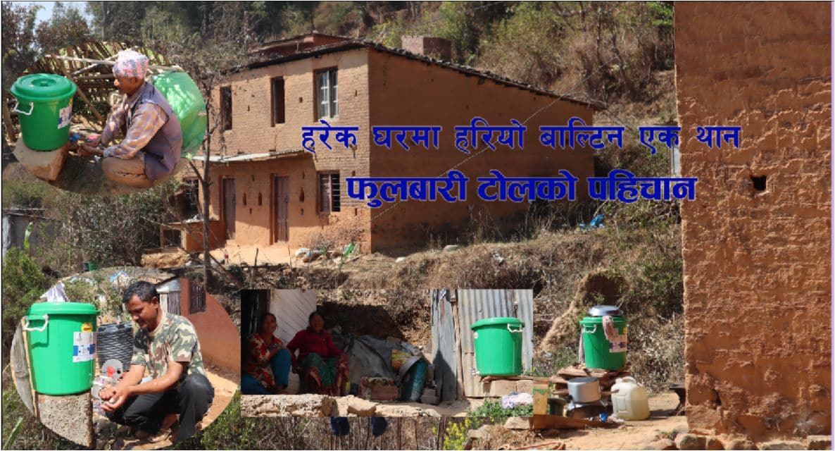 ललितपुर : महालक्ष्मी नगरपालिकाको वडा नं. ८ फूलबारी टोलको हरेक घरको ढोका नजिकै हरियो बाल्टिन राख्नुपर्ने नियम जस्तै बनेको छ । घर बाहिर गएपछि हात मुख धोएर मात्र घरमा प्रवेश गर्न हरेक घरमा पानीले भरिएको बाल्टिन र साबुनको व्यवस्था गरिएको हो । ढोका नजिकै बाल्टिन राख्दा कामको धुनमा भुलिहालेछ भने पनि हात धुन सम्झाउने र हातमुख धोएर घरभित्र प्रवेश गर्दा किटाणु भित्र प्रवेश गर्न नपाउने फूलबारी टोलकी सुमना बिसंकेले बताउनुभयो ।