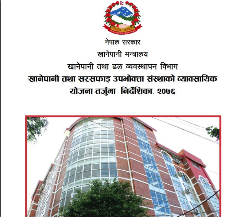 ‘खानेपानी तथा सरसफाइ उपभोक्ता संस्थाको व्यवसायिक योजना तर्जुमा निर्देशिका २०७६’ हेर्न खानेपानी तथा ढल व्यवस्थापन विभागको वेभसाईट dwssm.gov.np हेर्नुहोला