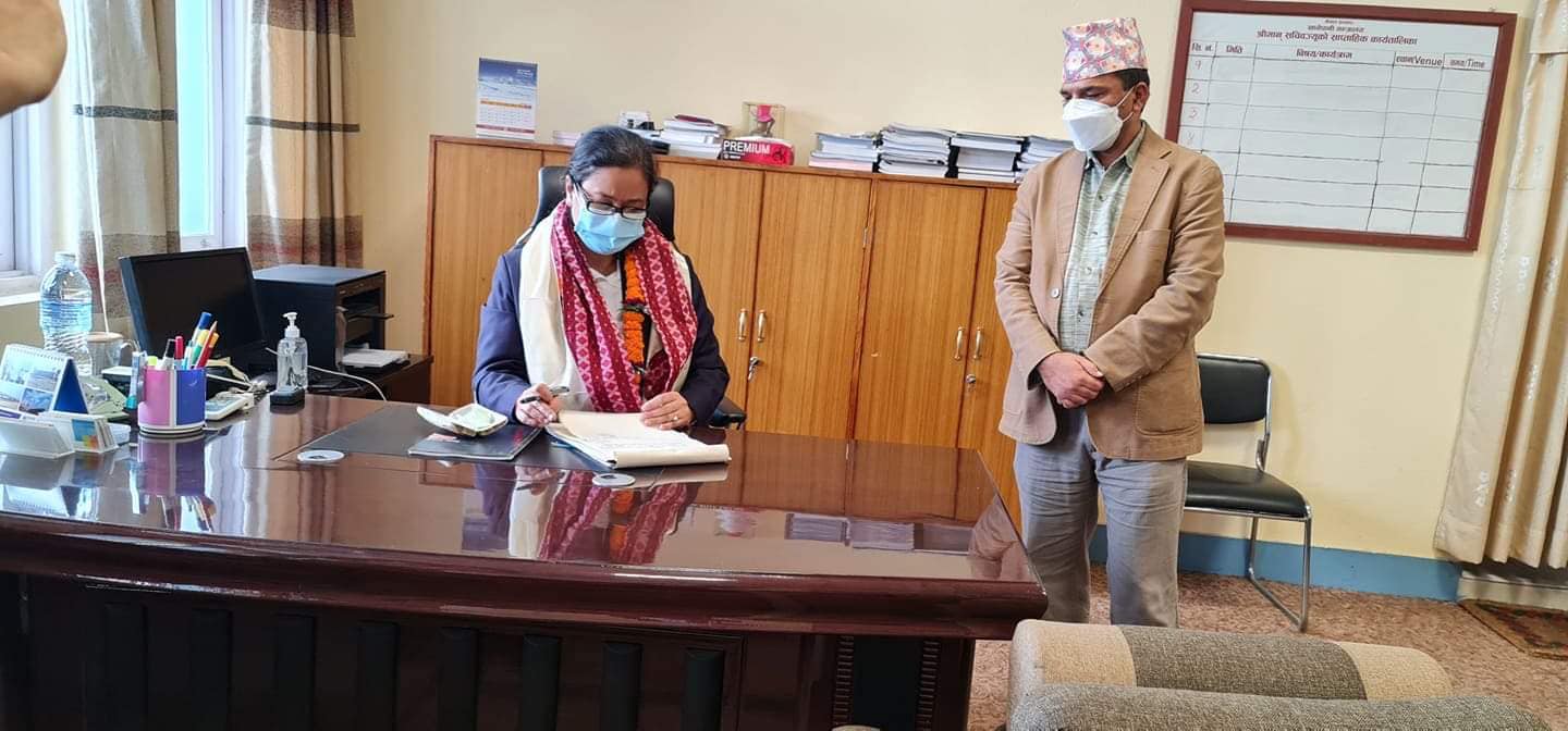 काठमाडौ : खानेपानी मन्त्रालयको सचिवमा प्रमिलादेवी शाक्य (बज्राचार्य) नियुक्त हुनु भएको छ । विहीबार बसेको मन्त्रीपरिषदको बैठकले भौतिक पूर्वाधार तथा यातायात मन्त्रालयको रेल विभागकी महानिर्देशक प्रमिलादेवी शाक्य (बज्राचार्य) लाई सचिवमा बढुवा गरी खानेपानी मन्त्रालयमा पदस्थापन गर्ने निर्णय गरिएको हो । सचिव शाक्यले शुक्रबारै सचिवको जिम्मेवारी सम्हाल्नुभएको छ ।