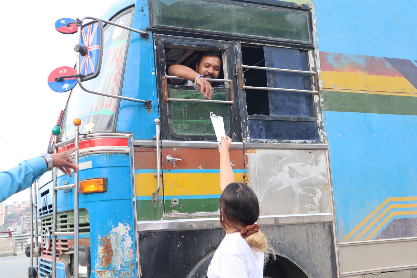 यिनै अवस्थालाई मध्यनजर गरी नेपाल मास्क : कोभिड-१९ प्रतिकार्य परियोजनाले काठमाडौको कोटेश्वर, कलंकी र नयाँ बसपार्क गोंगबुमा मास्कको प्रयोग सम्बन्धी सचेतनामूलक कार्यक्रम गरिरहेको छ । सोमबार देखि सुरु गरिएको यो कार्यक्रम बुधबारसम्म जारी रहनेछ ।