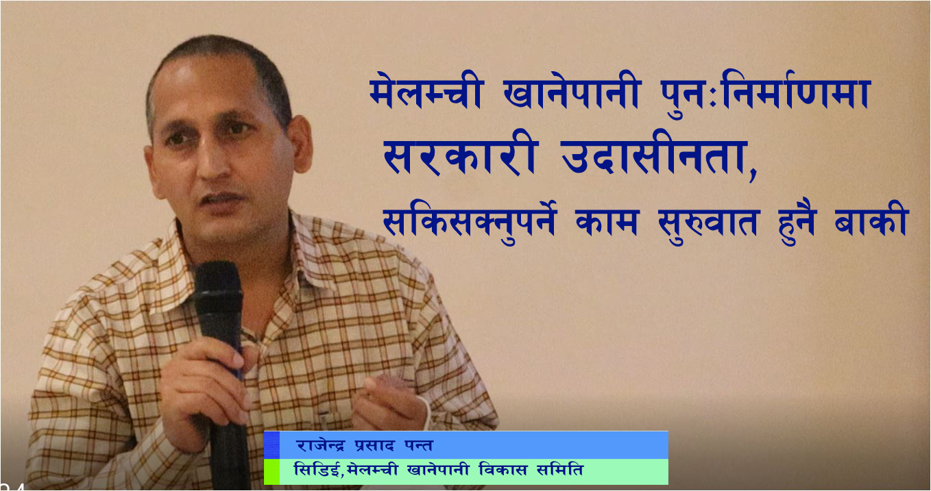 मेलम्ची खानेपानीको वर्तमान अवस्था, आयोजनाबाट गरिएका प्रयासहरु, समस्या तथा समाधान, तत्काल गर्नुपर्ने मुख्य मुख्य कार्यहरु, दीर्घकालीन रुपमा गर्नुपर्ने मुख्य कार्यहरु र कार्ययोजना कार्यान्वयनका चुनौतीहरु लगायत बिषयमा भिडियो प्रस्तुतीकरण गर्दै हुनुहुन्छ मेलम्ची खानेपानी विकास समितिका सिनियर डिभिज्नल इन्जिनियर राजेन्द्र प्रसाद पन्त :