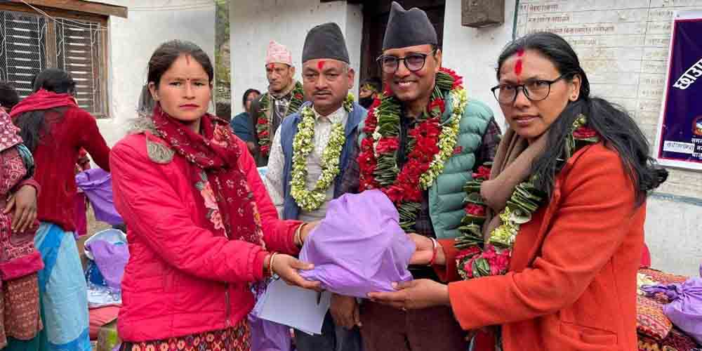 बाजुरा : बाजुराको बडीमालिका नगरपालिकाको वडा नम्बर २ र ८ वडाका चार÷चार सय किशोरी र महिलालाई स्यानिटरी प्याड र अन्य सामग्री वितरण गरिएको छ । बडीमालिका नगरपालिकाको समन्वय र मानवीय सेवामा अनेकौँ प्रयास कैलालीको सहयोगमा नगरका २ वटा वडाका किशोरी तथा महिलालाई स्यानिटरी प्याड वितरण गरिएको हो ।