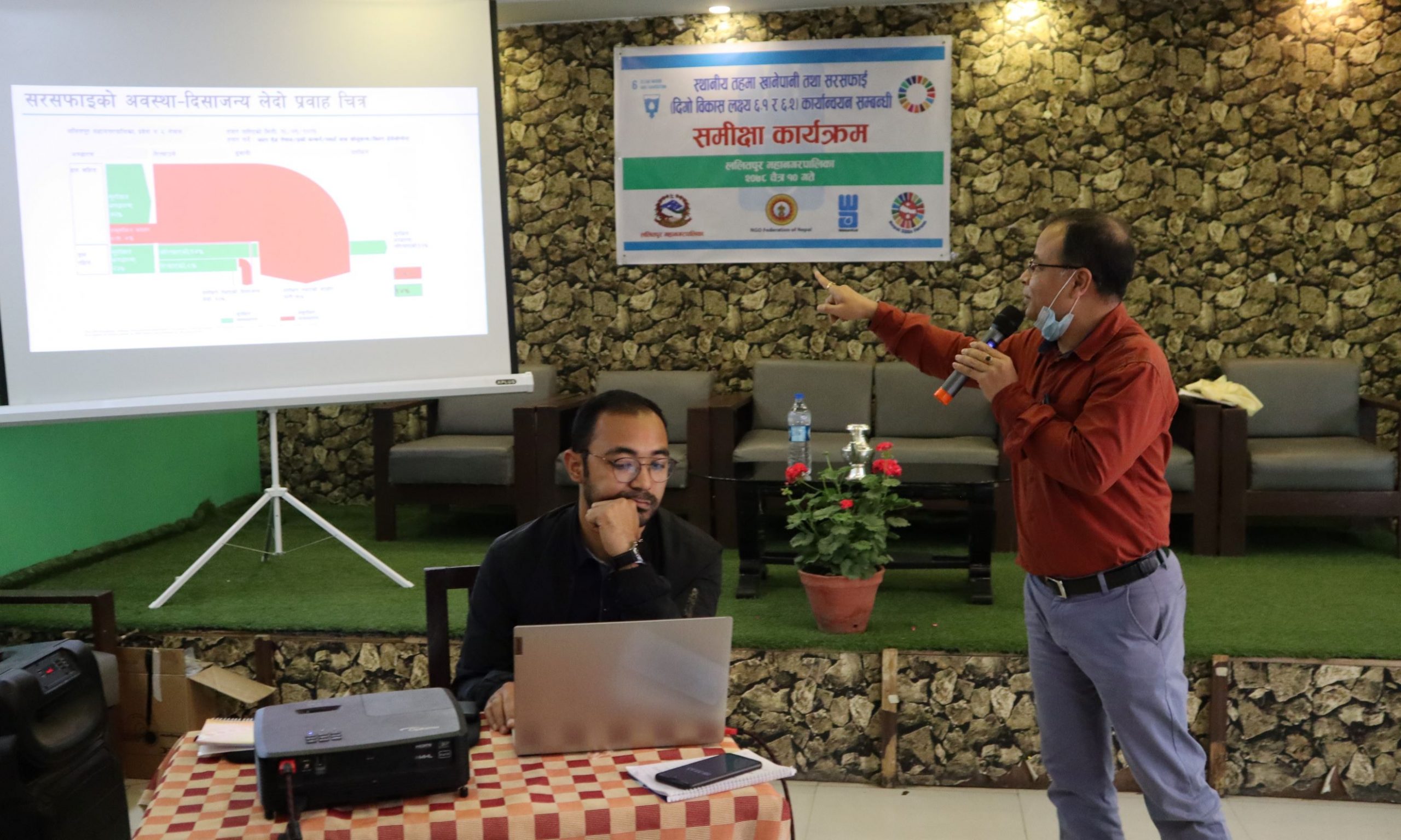 ललितपुर महानगरपालिकाका वातावरण इन्जिनियर प्रदिप अमात्यले भने दिगो विकास लक्ष्य ६ को स्थानीयकरणको सम्बन्धमा पालिकाको नीति, योजना तथा कार्यान्वयनको अवस्था बिषयमा प्रकाश पार्नुभएको थियो ।