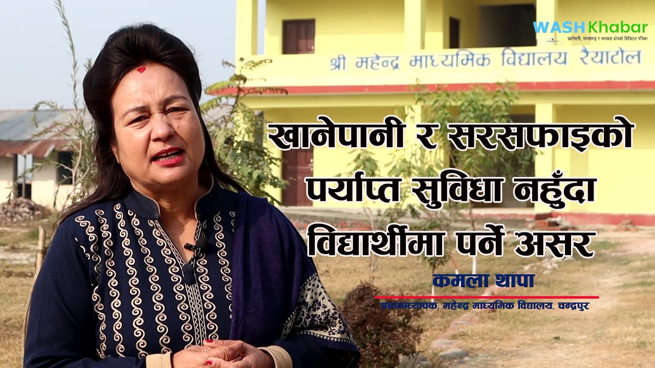 विद्यालयमा खानेपानी, सरसफाइ र स्वच्छताको अवस्था, विद्यार्थी संख्याको अनुपातमा खानेपानी र सरसफाइको पर्याप्त सुविधा नहुँदा विद्यालयको पठनपाठन लगायत शैक्षिक गुणस्तरमा पर्ने असर र अबको योजना लगायत बिषयमा महेन्द्र माध्यमिक विद्यालय, चन्द्रपुरकी प्रधानाध्यापक कमला थापासँग हामीले कुराकानी गरेका छौं ।