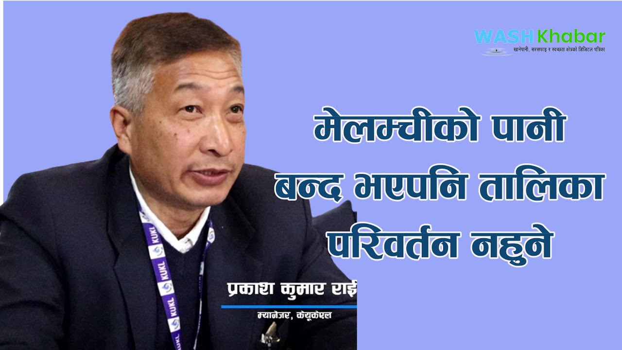तर मेलम्चीको पानी बन्द भएपनि फरक नपर्ने गरी काठमाडौ उपत्यका खानेपानी लिमिटेड (केयूकेएल) ले काम गरिरहेको छ । मेलम्ची आयोजनाबाट उपलब्ध भईरहेको पानी आगामी २०८० असारमा अवरुद्ध हुन सक्ने सम्भावनालाई मध्यनजर गरी वैकल्पिक व्यवस्थाको रुपमा वागमती नदीबाट १० करोड लिटर पानी थप गरिने केयूकेएलका प्रबन्धक एवं प्रवक्ता प्रकाश कुमार राईले जानकारी गराउनुभयो ।