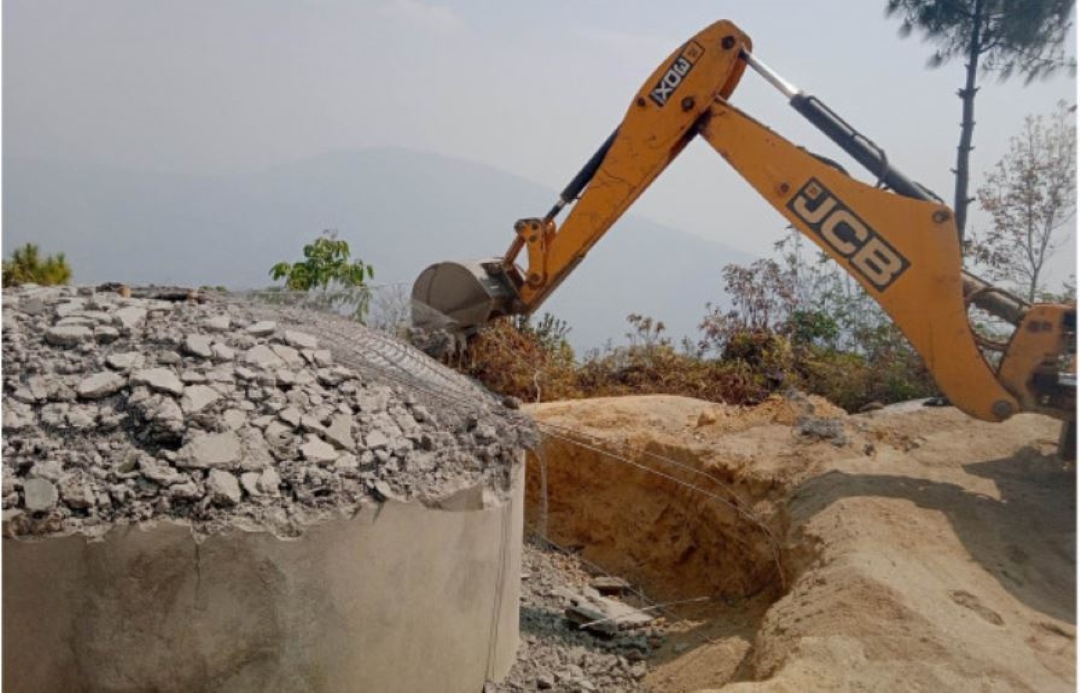 खोटाङ : खोटाङको साप्सु खोला बिजयखर्क बसेरी लिफ्टिङ खानेपानी आयोजनाको फेरो सिमेन्ट ट्याङ्क निर्माण सम्पन्न नहुँदै चर्किएपछि ठेकेदार कम्पनी आफैले भत्काएको छ । दिक्तेल रुपाकोट मझुवागढी नगरपालिकाको बिजयखर्क स्थित फिरफिरे ट्यांकी डाँडामा निर्माण गरिएको २० हजार लिटर क्षमताको फेरोसिमेन्ट ट्याङ्क वडा कार्यालय र उपभोक्ता समितिको रोहबरमा स्वयं ठेकेदार कम्पनीले भत्काएको हो ।