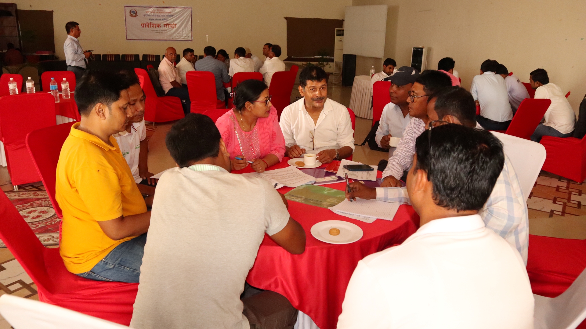 मधेस प्रदेशमा खानेपानी, सरसफाइ र स्वच्छताको क्षेत्रमा कार्यरत सरकारी तथा गैरसरकारी संस्था, विकास साझेदार र निजी क्षेत्रको सहभागिता सञ्चालित गोष्ठीमा विभिन्न सात वटा बिषयगत कार्य समूहमा विभाजन भई केन्द्रले तयार गरेको विभिन्न प्रश्नावलीहरु भरिएको थियो । मधेस प्रदेशमा उपलब्धताको आधारमा हरेक समूहले रातो, पहेंलो र नीलो अर्थात एकदम राम्रो (नीलो), ठिकठिकै (पहेंलो) र एकदम नाजुक वा हुँदै नभएको स्थितिलाई (रातो) चिन्ह अंकित गरिएको थियो ।