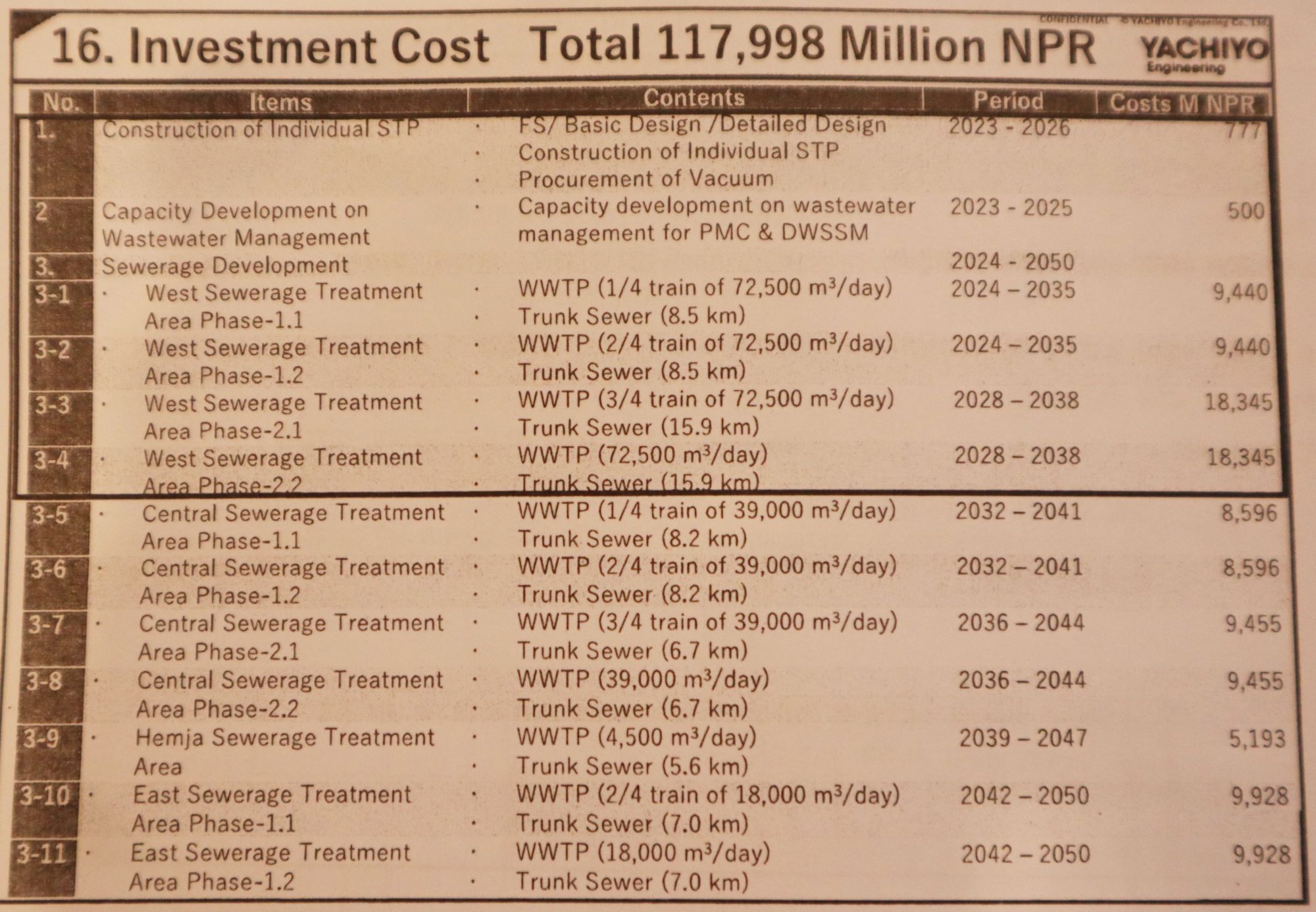 ढल व्यवस्थापन गर्न सन् २०५० सम्मको लागि १ खर्ब १८ अर्ब बजेट आवश्यक पर्ने प्रक्षेपण गरिएको छ । फोहोरपानी व्यवस्थापन सम्बन्धी क्षमता विकास, फोहोरपानी प्रशोधनका अवयवहरु निर्माण तथा सञ्चालनका लागि उक्त बजेट प्रस्ताव गरिएको हो ।