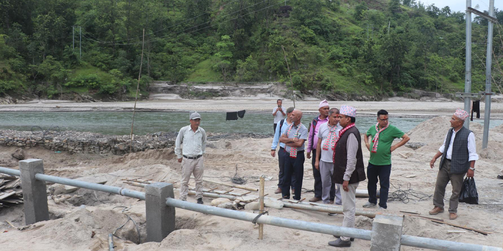 उपभोक्तालाई चाँडो पानी खुवाउने उद्देश्यले बाढीले क्षति गरेर पुनःनिर्माण थालिएको आयोजनाको कोशी प्रदेशका खानेपानी सिँचाइ तथा ऊर्जा मन्त्रालयका सचिव अरुणकुमार झा, मन्त्रालयका महाशाखा प्रमुख मेघराज ज्ञावली, प्रशासन महाशाखा प्रमुख सञ्जयकुमार पोखरेलसहित डिभिजन प्रमुख देवनाथ सिंहले स्थलगत अनुगमन गर्नुभएको छ ।