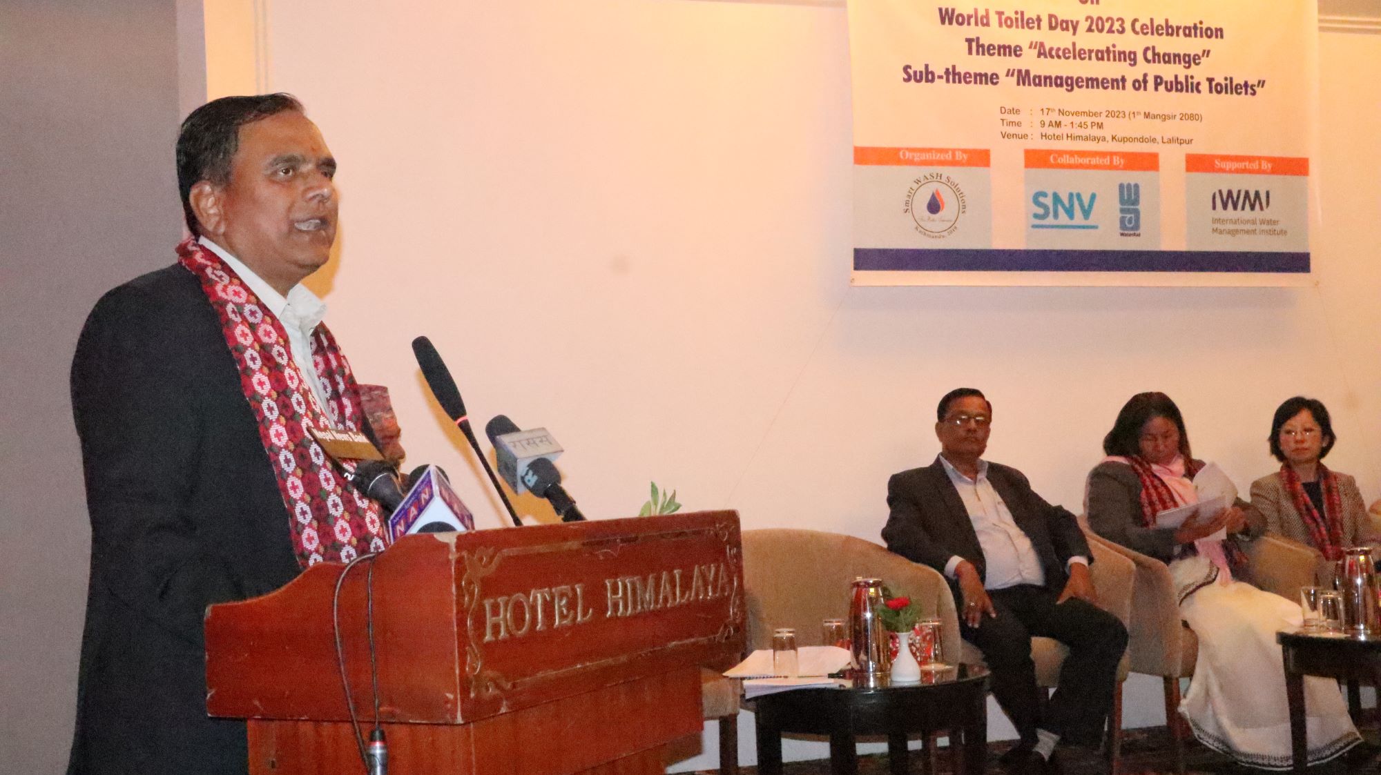 विश्व शौचालय दिवसको पूर्व सन्ध्यामा वाटर एड नेपाल र एस.एन.भी.नेपालको आर्थिक सहयोगमा स्मार्ट वास सोलुसन्सले आयोजना गरेको ‘सार्वजनिक शौचालयको व्यवस्थापन’ विषयक गोष्ठीमा सचिव साहले त्यसपछि खानेपानी र सरसफाइ क्षेत्रमा काम गर्न नीतिगत व्यवस्थाका कारण नरोकिने बताउनुभयो । ‘खानेपानी र सरसफाइ क्षेत्रमा आवश्यक खानेपानी तथा सरसफाइ ऐन, नियमावली, नीति, निर्देशिका, मापदण्डहरु बनेपछि ऐन कानुनको अभाव रहने छैन’ उहाँले भन्नुभयो ।