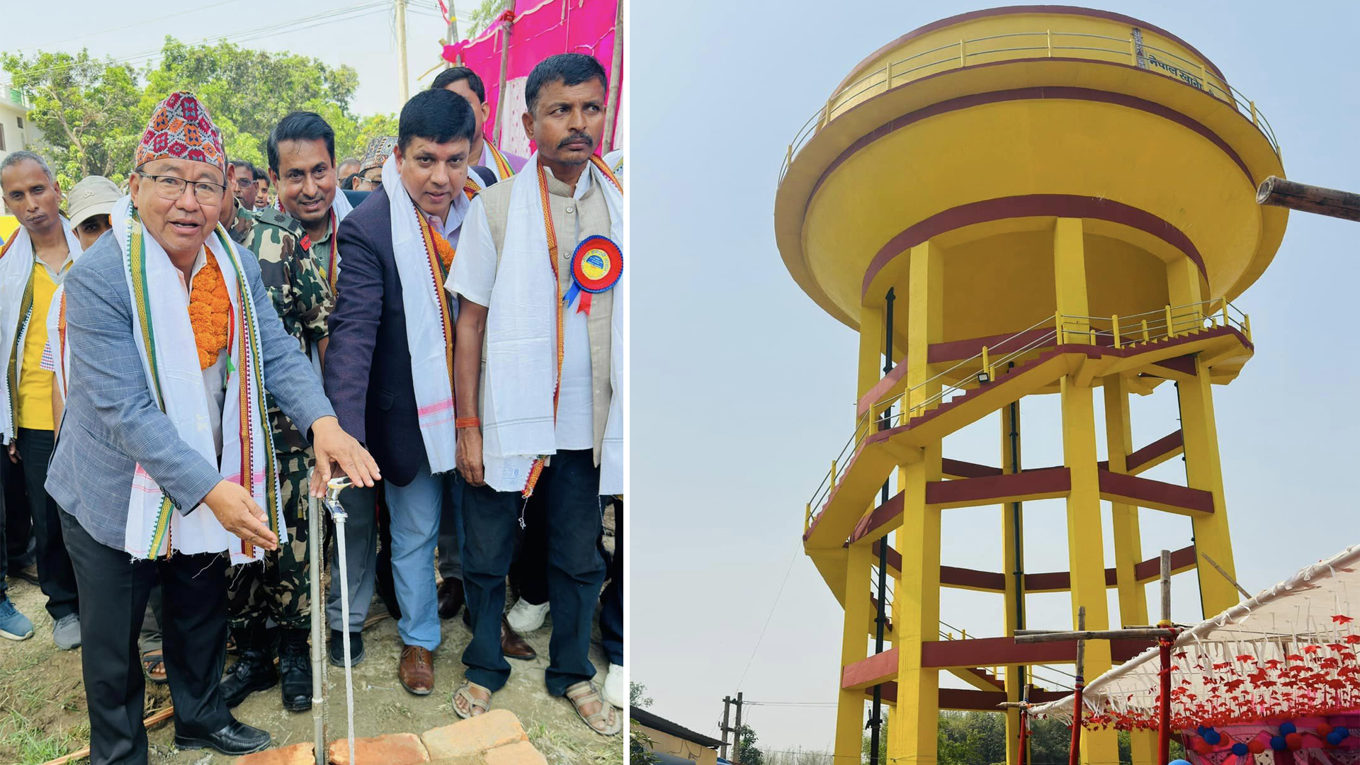 सप्तरी : नेपाल खानेपानी संस्थान राजविराज शाखा अन्तर्गत निर्मित खानेपानी संरचनाको संघीय खानेपानी मन्त्री राजेन्द्र कुमार राईले उदघाटन गर्नुभएको छ । राजविराज नगरपालिकाको वडा नं. १ स्थित चनौरा पडरिया र वडा नं. ६ स्थित खर्साल टोलमा निर्मित ओभरहेड पानी ट्याङ्की र पानी प्रशोधन संरचनाको मन्त्री राईले उदघाटन गनुभएको हो ।