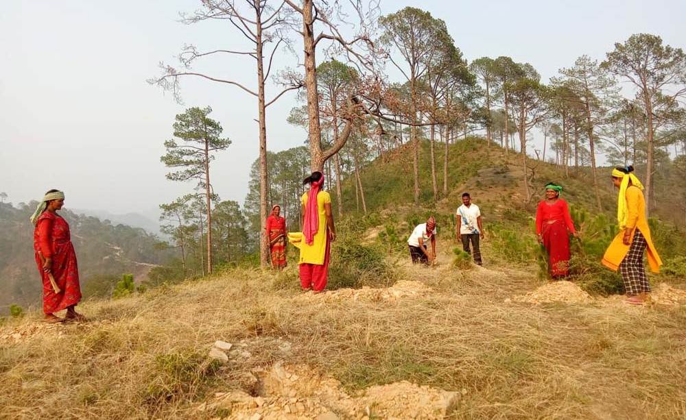 स्थानीय असुर–मौजा सामुदायिक वनको टिकको लेकमा खाडल तयार पारिएको सामुदायिक वनका अध्यक्ष महेन्द्र भट्टले बताउनुभयो । सल्लाको रुख एकैचोटि विस्थापित गर्न गाह्रो हुने भएकाले हरेक वर्ष चार हजार खाडल खनेर पानी सञ्चित गर्ने बिरुवा रोप्ने लक्ष्य राखिएको सामुदायिक वन उपभोक्ता समितिका सचिव रामदत्त भट्टले बताउनुभयो ।