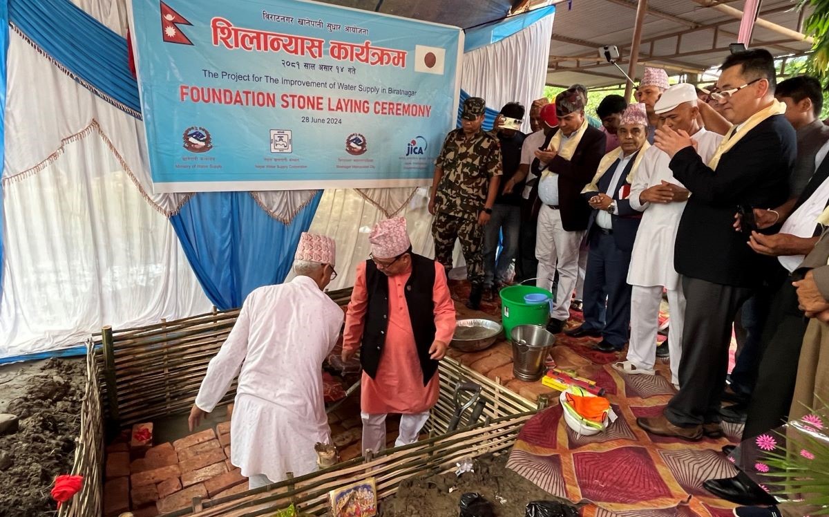 विराटनगर : विराटनगरमा खानेपानीको गुणस्तर सुधारका लागि २ अर्ब ५४ करोड रुपैयाँ लागतमा निर्माण हुन लागेको खानेपानी आयोजनाको शिलान्यास गरिएको छ। जापान अन्तर्राष्ट्रिय सहयोग नियोग (जाइका) को अनुदान सहयोगमा निर्माण हुन लागेको खानेपानी आयोजनाको शुक्रबार खानेपानीमन्त्री राजेन्द्रकुमार राईले शिलान्यास गर्नुभएको हो। खानेपानी आयोजना सन् २०२६ सम्ममा सम्पन्न गर्ने लक्ष्य राखेको छ।