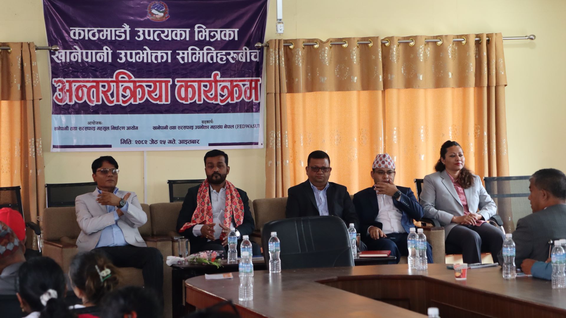 सोही बिषयमा अन्तरक्रिया गर्ने उद्देश्यले खानेपानी तथा सरसफाइ सेवा महसुल निर्धारण आयोगले खानेपानी तथा सरसफाइ उपभोक्ता महासंघ नेपालको सहकार्यमा ‘काठमाडौ उपत्यका भित्रका खानेपानी उपभोक्ता समितिहरु बीचको अन्तरक्रिया कार्यक्रम’आयोजना गरेको थियो।