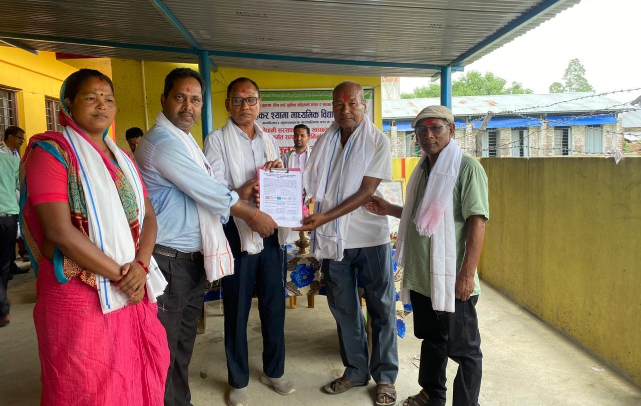 विद्यालय व्यवस्थापन समितिका अध्यक्ष राजेश्वर प्रसाद सिंहको अध्यक्षतामा सम्पन्न कार्यक्रममा अग्नीसाइर कृष्णासवरन गाउँपालिका, वार्ड नं ४ का वडा अध्यक्ष तेज नारायण यादवको रोहवरमा उक्त संरचनाहरूकोे सञ्चालन, उचित व्यवस्थापन लगायत मर्मत सम्भार एवं संरक्षण सम्बर्धन गर्ने कार्यको सम्पुर्ण जिम्मेवारी विद्यालय परिवारको हुने सुनिश्चिताका साथ विद्यालयलाई हस्तान्तरण गरिएको हो ।