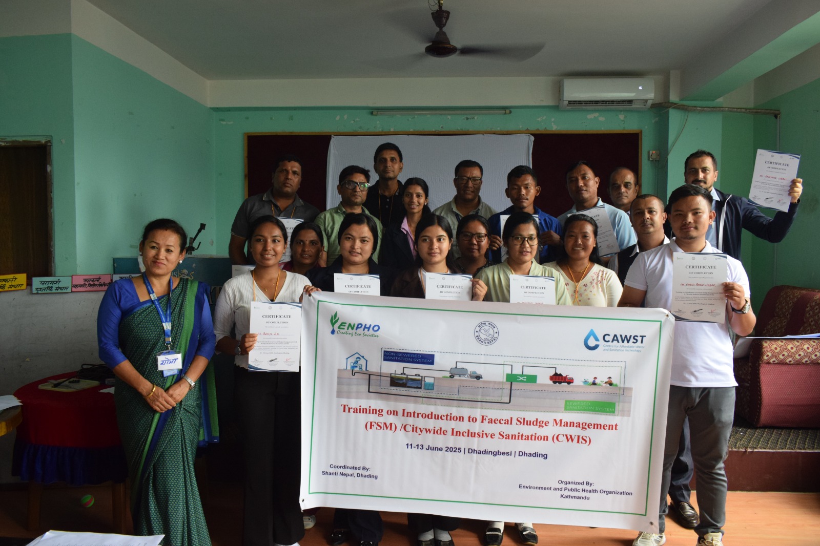 शान्ति नेपाल धादिङसँगको सहकार्यमा वातावरण र जनस्वास्थ्य संस्था (एन्फो) ले आयोजना गरेको तालिममा धादिङ जिल्लाको नीलकण्ठ र धुनीबेसी नगरपालिकाका साथै ज्वालामुखी, बेनीघाट, गजुरी गाउँपालिका तथा गोरखा जिल्लाको आरुघाट गाउँपालिकाबाट, साथै शान्ति नेपाल, फोकस नेपाल र कम्युनिटी ट्रान्सफरमेशन सोसाइटीका गरी २१ जनाको सहभागिता थियो।