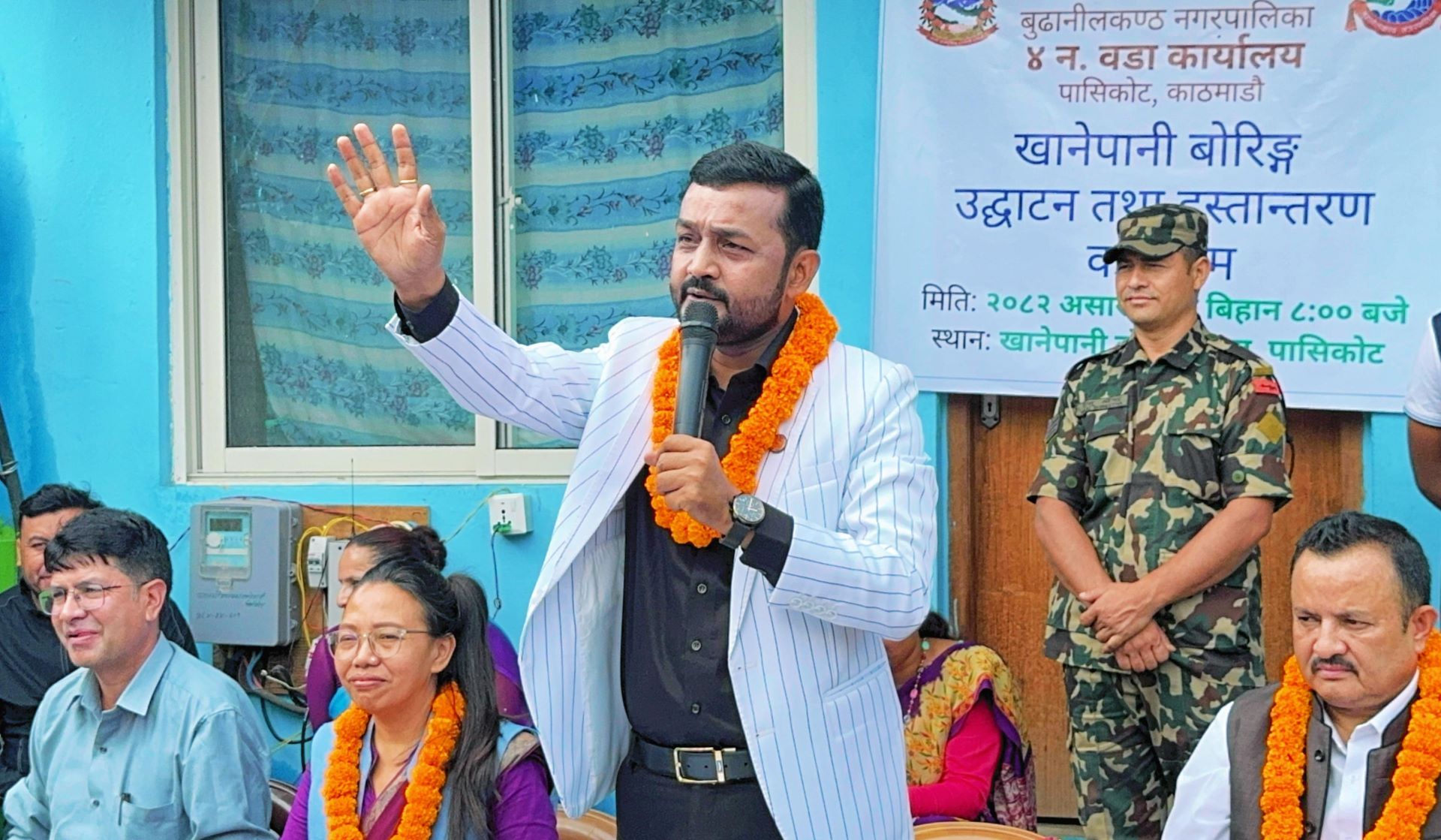 आज बुढानीलकण्ठ नगरपालिका–४ मा निर्माण सम्पन्न खानेपानी आयोजनाको समुद्घाटन तथा काठमाडौँ उपत्यका खोपानी लिमिटेड (केयुकेएल) लाई औपचारिक हस्तान्तरण कार्यक्रमलाई सम्बोधन गर्दै मन्त्री यादवले काठमाडौँवासीले अब वर्षा र हिउँदका कुनै पनि मौसममा स्वच्छ, सुरक्षित र दिगो खानेपानीको अभाव भोग्नु नपर्ने तथा मेलम्चीको पानी दैनिक रुपमा वितरण गरिने विश्वास दिलाउनुभयो ।