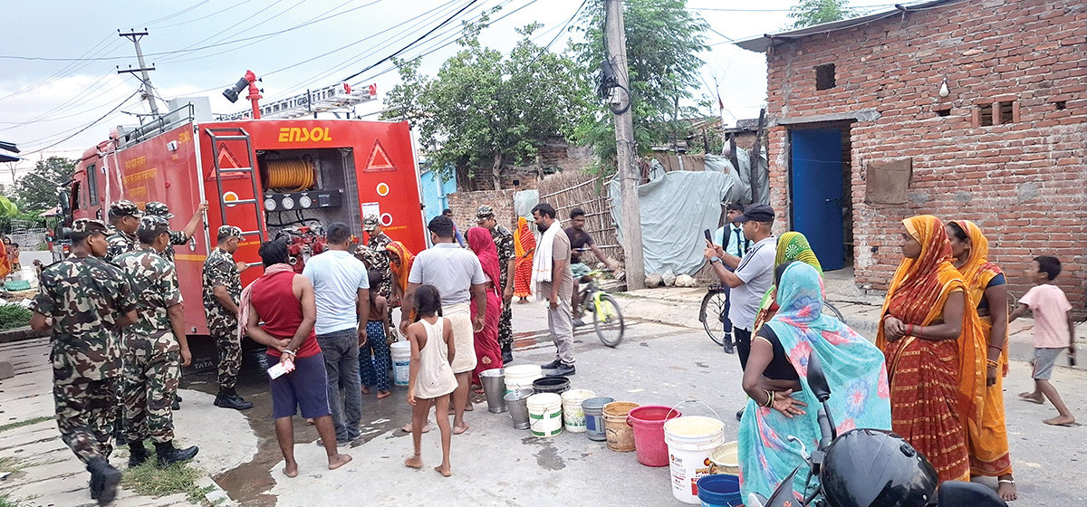 यसअघि प्रदेश सरकारले डिभिजन वन कार्यालयका तीन वटा ट्यांकर खानेपानी आपूर्तिका लागि प्रयोगमा ल्याइसकेको छ । यसैगरी खानेपानी समस्या रहेका क्षेत्रमा नेपाली सेनाले पनि ७ वटा ट्यांकर र एउटा वारुणयन्त्रमार्फत उपलब्ध गराइरहेको जनाइएको छ। नागरिक न्यूजबाट साभार गरिएको।