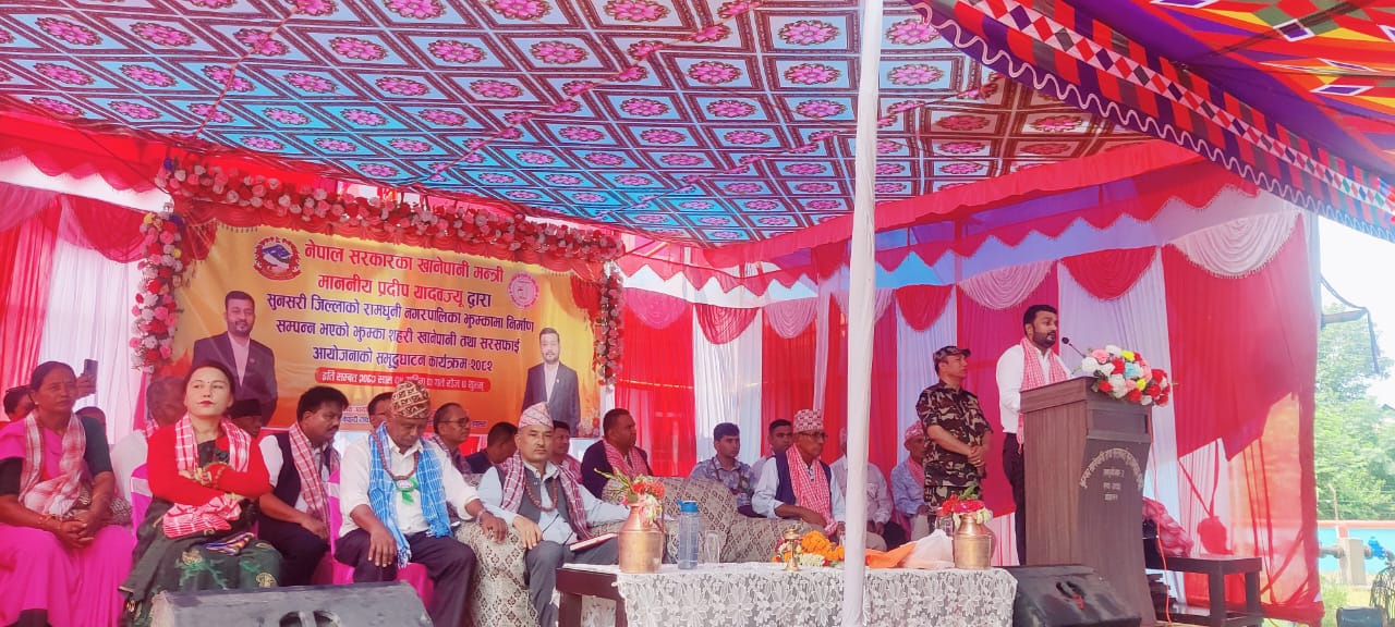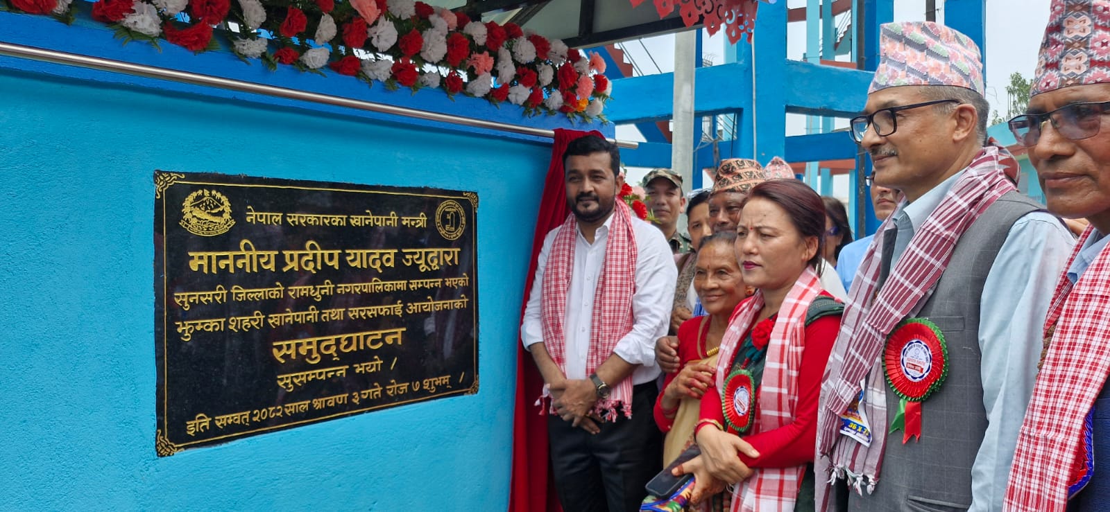 इटहरी : खानेपानीमन्त्री प्रदीप यादवले “झुम्का सहरी खानेपानी तथा सरसफाइ आयोजना” को उद्घाटन गर्नु भएको छ । रामधुनी नगरपालिकाको वडा नं. १, २, ३, र ५ का २२ हजार ७८७ नागरिक प्रत्यक्ष लाभान्वित हुने खानेपानीको मन्त्री यादवले शनिबार उदघाटन गर्नुभयो।