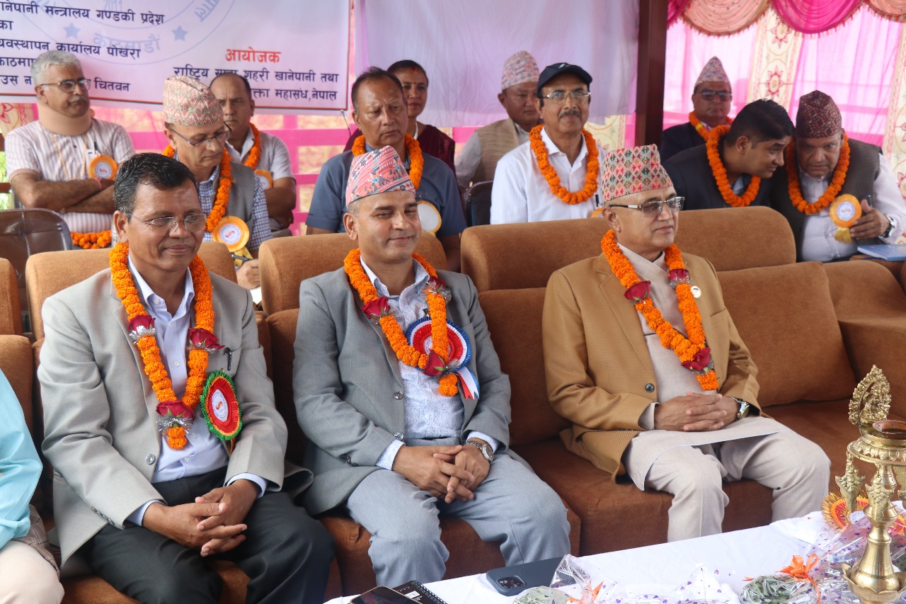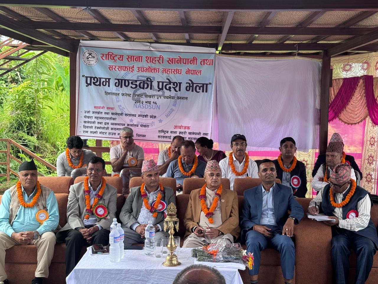पोखरा : “जनताको पानी, सरकारको लगानी” भन्ने भावनासहित राष्ट्रिय साना सहरी खानेपानी तथा सरसफाई उपभोक्ता महासंघ नेपालको प्रथम “गण्डकी प्रदेश भेला” पोखरामा सम्पन्न भएको छ। भेलाको उदघाटन प्रमुख अतिथि पूर्व संघीय स्वास्थ्य तथा गृहमन्त्री तथा गण्डकी प्रदेशका निवर्तमान मुख्यमन्त्री खगराज अधिकारीले पानसमा दियो बालेर गर्नुभयो।