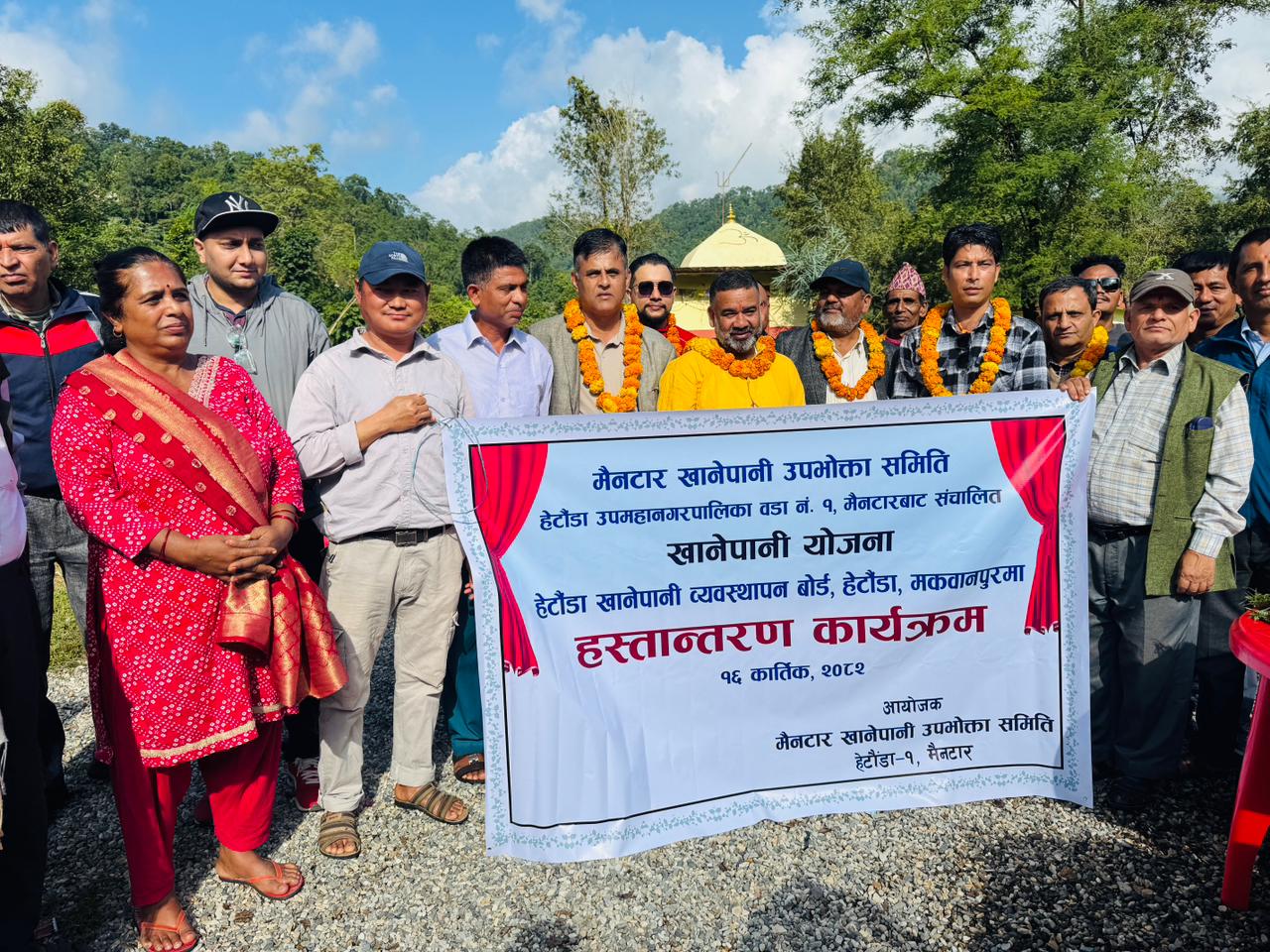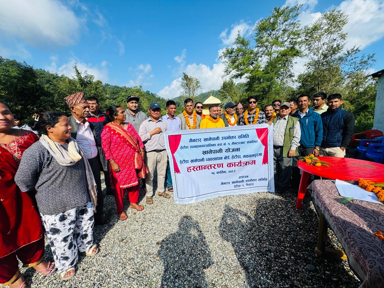 हेटौंडा उपमहानरपालिकाका नगर उपप्रमुख राजेश बानियाँको प्रमुख आतिथ्यता तथा कार्यक्रम हेटौंडा वडा नं. १ का वडा अध्यक्ष सविन न्यौपाने, हेटौडा खानेपानी व्यवस्थापन बोर्डका अध्यक्ष प्रताप बिष्ट, बोर्ड सदस्य इन्द्र प्रसाद नेपाल, वडा सदस्य रामकृष्ण अधिकारी, हेटौंडा खानेपानी व्यवस्थापन बोर्डका कार्यकारी निर्देशक बिष्णु प्रसाद सापकोटा र इन्जिनियर विपिन राज वाग्लेको आतिथ्यता एवम् खानेपानी उपभोक्ता समितिका अध्यक्ष दिल बहादुर सुनारको सभा अध्यक्षतामा मैनटार खानेपानी उपभोक्ता समितिबाट संचालित आयोजना हस्तान्तरण कार्यक्रम सम्पन्न भएको हो ।