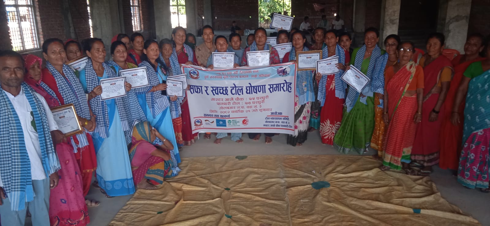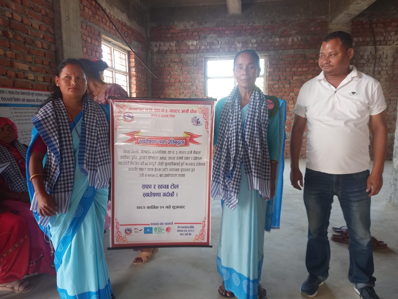 त्यस पश्चात कार्तिक १३ गते वडा स्तरीय खानेपानी, सरसफाइ तथा स्वच्छता समन्वय समिति (वार्ड वास सीसी) बाट प्रमाणीकरण गरी शुक्रबार पूर्ण सरसफाइ उन्मुख सफा र स्वच्छ टोल घोषणा गरिएको सबल नेपालका देवेस चौधरीले जानकारी दिनुभयो।