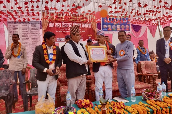 बर्दिया : बारबर्दिया नगरपालिका–२ कुमरागाउँस्थित शान्ति आधारभूत विद्यालयलाई ‘तीनतारा विद्यालय’ घोषणा गरिएको छ। बारबर्दिया नगरपालिकाको खानेपानी, सरसफाइ तथा स्वच्छता कार्यविधि–२०८१ अन्तर्गतका सबै १० सूचक पूरा भएपछि लुम्बिनी प्रदेशका सामाजिक विकासमन्त्री जन्मजय तिमिल्सिनाले विद्यालयलाई तीनताराको प्रमाणपत्र प्रदान गर्नुभयो।