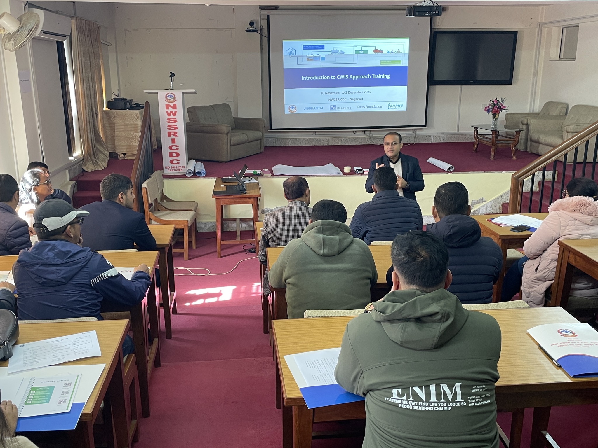 नगरकोट : राष्ट्रिय खानेपानी तथा सरसफाइ अनुसन्धान, नवप्रवर्तन तथा क्षमता अभिवृद्धि केन्द्र (NWSSRICDC) नगरकोटमा नगरव्यापी समावेशी सरसफाइ (CWIS) अवधारणा सम्बन्धी तीन दिने प्रशिक्षण भैरहेको छ ।
