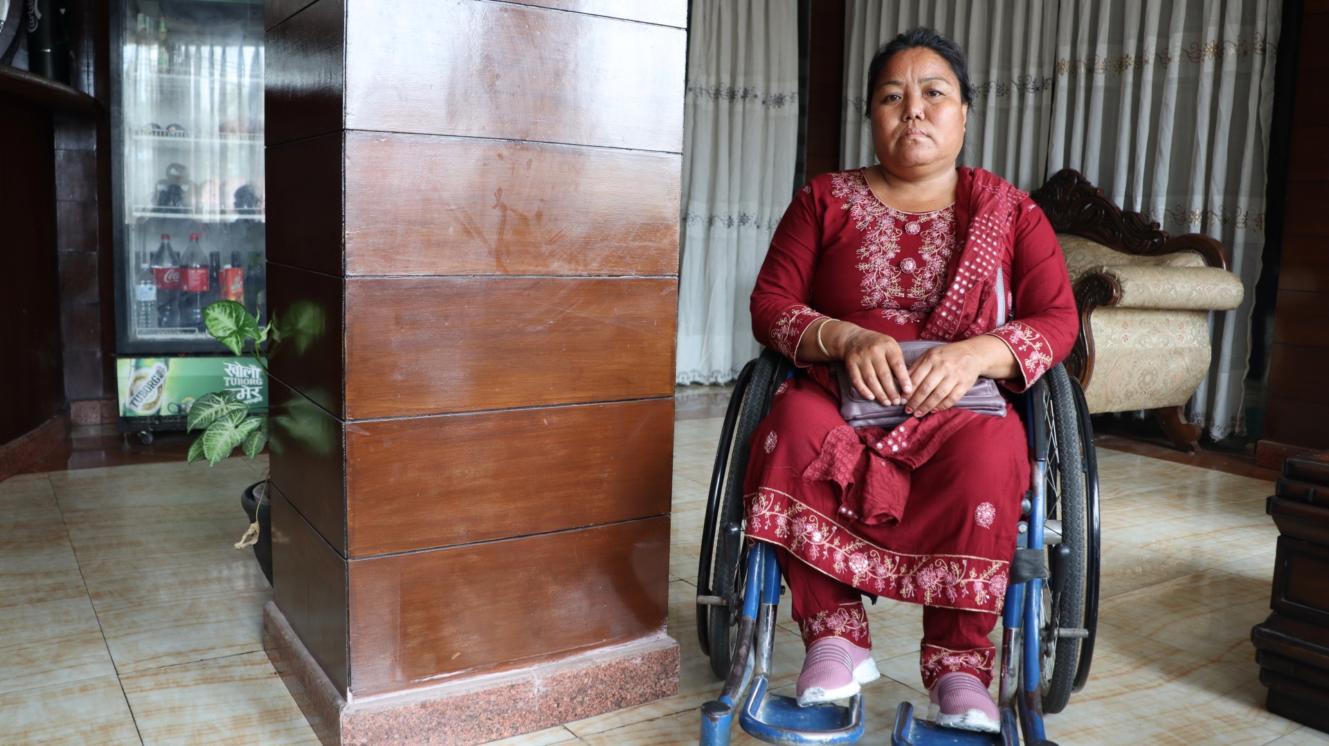 ‘हात टेकेर दिसापिसाब ग¥यौँ, हात धुने पानी पनि हुँदैन,’ उहाँ भन्नुहुन्छ, ‘ह्वीलचेयर लिएर जाँदा ह्वीलचेयर जाने ठाउँ हुँदैन, त्यस्तो बेला साह्रै आपत पर्छ।’