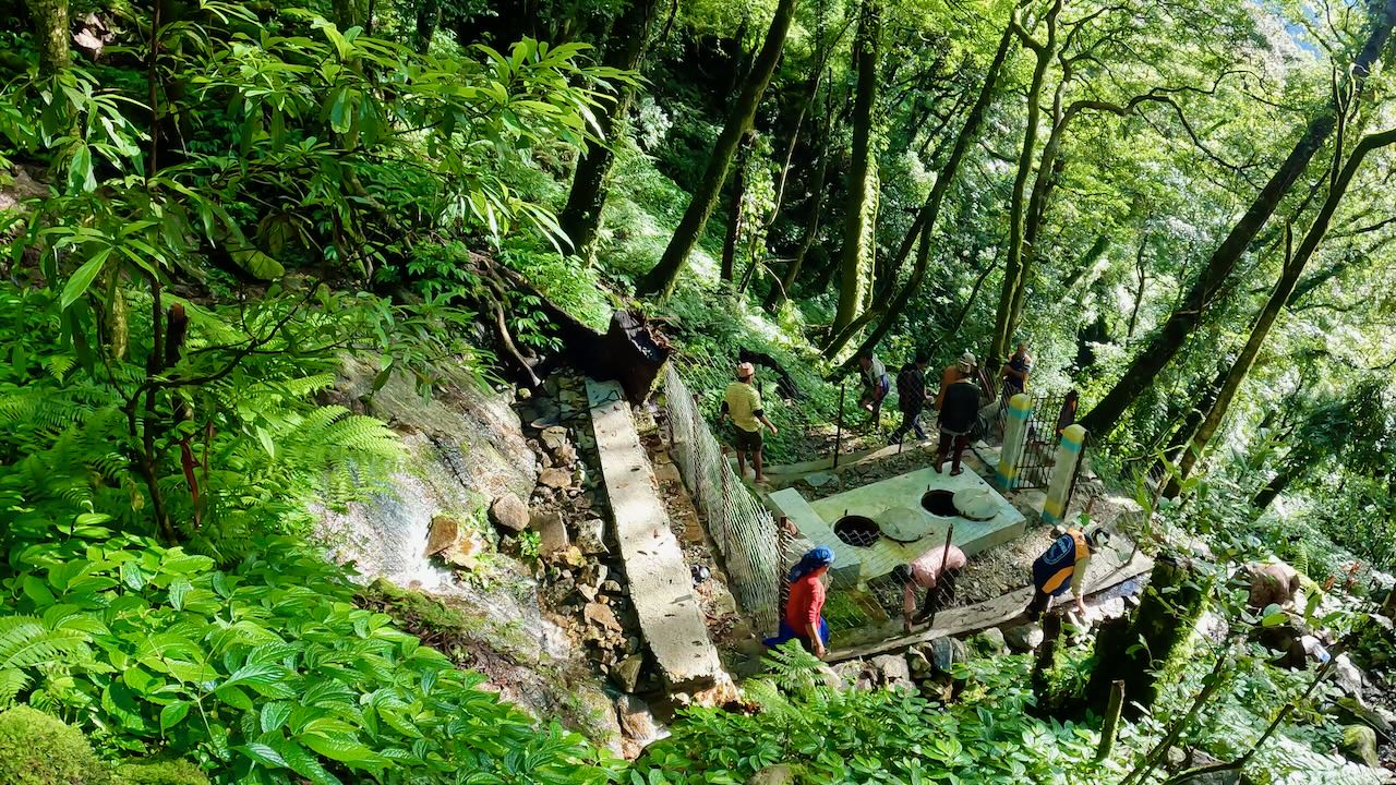 ढुंगा, सिमेन्ट र बालुवाबाट पानी संकलन गर्ने कक्ष बनाइन्छ।