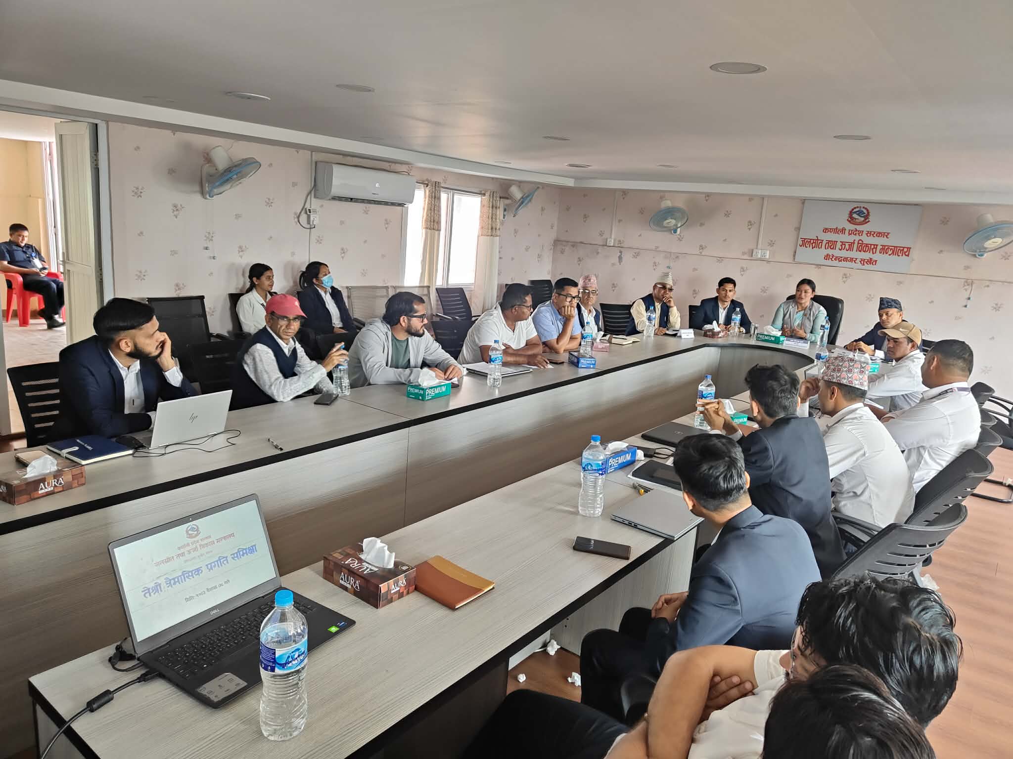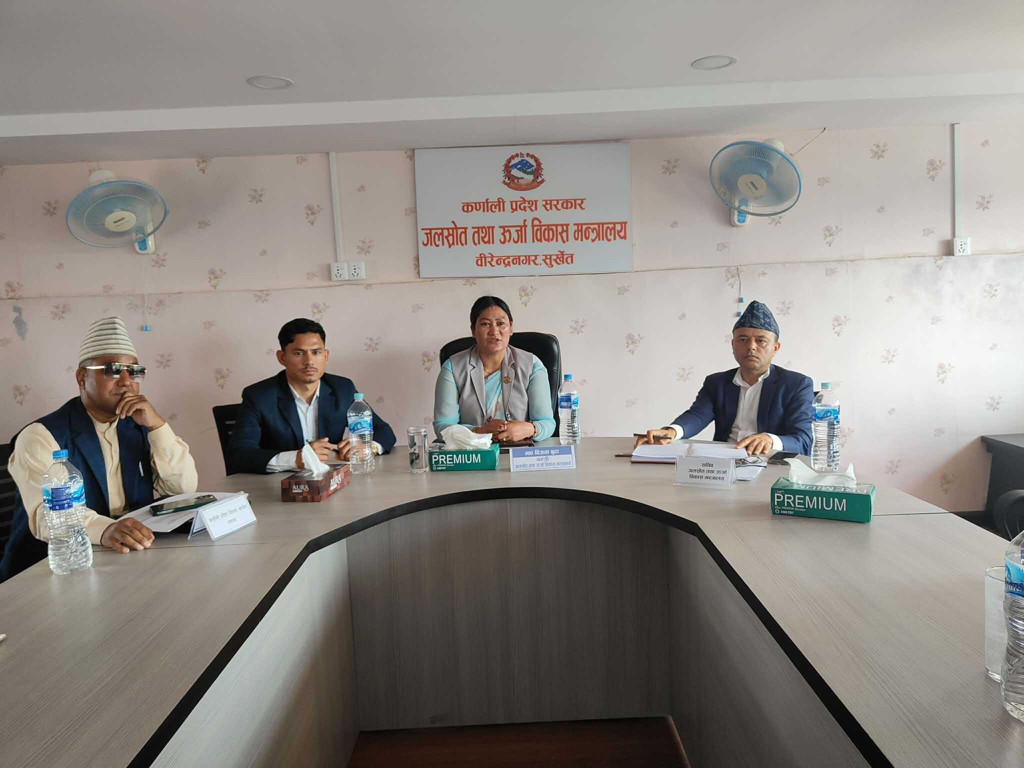 प्रदेशस्तरमा सञ्चालनमा रहेका जलस्रोत तथा ऊर्जा सम्बन्धी योजनाहरूको प्रगति, प्रभावकारिता र चुनौतीहरूको समग्र मूल्यांकन गर्ने उद्देश्यले कार्यक्रम आयोजना गरिएको मन्त्रालयले जनाएको छ।कार्यक्रममा जलस्रोत तथा ऊर्जा विकास मन्त्री बिजया बुढा को प्रमुख आतिथ्यता रहेको थियो भने मन्त्रालयका प्रदेश सचिव डा. योगेन्द्र मिश्र को अध्यक्षतामा कार्यक्रम सञ्चालन भएको हो। कार्यक्रममा कर्णाली प्रदेश योजना आयोग का सदस्य डम्बर बहादुर रावत, आर्थिक मामिला तथा योजना मन्त्रालय का प्रतिनिधिहरू, साथै मन्त्रालय मातहतका विभिन्न जिल्लाका कार्यालय प्रमुखहरूको उल्लेखनीय सहभागिता रहेको छ।