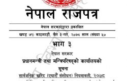 काठमाडौ : सरकारले सार्वजनिक खरिद नियमावलीको ११ औं संशोधन राजपत्रमा प्रकाशित गरेको छ। गत फागुन २६ गते मन्त्रीपरिषदबाट पारित भएको सार्वजनिक खरिद नियमावलीको ११ औं संशोधन राजपत्रमा प्रकाशन गरिएको हो। संशोधित नियमावली अनुसार अब ३ अर्ब सम्मको काम नेपाली निर्माण व्यवसायीले नै गर्न पाउने छन्।यस अघि १ अर्बसम्मको काम मात्र नेपाल...