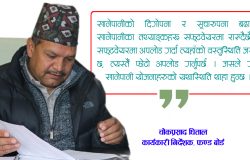 काठमाडौ : खानेपानी सचिव माधव बेल्बासेले बढीमा दुई बर्षभित्र ७५३ वटै स्थानीय तहको खानेपानी र सरसफाइसँग सम्बन्धित डाटा संकलन गरिसक्ने बताउनुभएको छ । खानेपानी र सरसफाइको तथ्याङ्क संकलन गर्न ग्रामीण खानेपानी तथा सरसफाइ सुधार आयोजना -२ ले निर्माण गरेको सफ्टवेयरबारे जानकारी गराउने उद्देश्यले आयोजना गरिएको कार्यक्रममा खानेपान...
