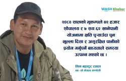 खानेपानी तथा सरसफाइका संरचनाहरु निर्माण गरेको केही वर्ष पश्चात सुचारु नहुने समस्या नेपालका विभिन्न भुभागमा अहिले पनि विद्यमान छ । खानेपानी तथा सरसफाइ प्रणालीबाट सेवा प्रवाह गर्न नसक्दा आम उपभोक्ताहरु असुरक्षित खानेपानी र सरफाइको प्रयोग गर्न वाध्य छन् । यसले सुरक्षित खानेपानी तथा सरसफाइको यात्रालाई पछाडि धकेले जस्तो...